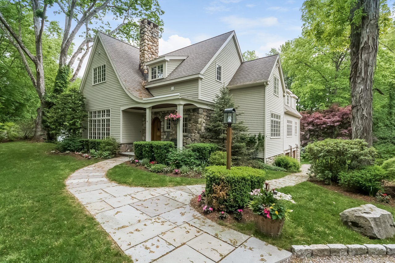 Your story begins at the end of a long gravel driveway, past the sun dappled trees and lush gardens, where a fairy tale cottage emerges from the clearing. This stone and clapboard home with grace & appeal is sited on 2.26 acres in Westport's Red Coat estate area. With 4,172 SF, 4 beds & 4/2 baths there is room for the whole royal court! The foyer opens to a barrel ceiling drawing your eye through the formal dining room. Off to the left is the light filled study w soaring 12 ft ceilings. When the big bad wolf huffs & puffs, grab a storybook from the numerous built-ins & cuddle up in front of the stone FP. Too tired to climb the stairs after the ball? The study is adjacent to a 1st floor bed w/full bath. Entertaining is a must in any enchanted cottage so rooms easily flow from one to the next for parties large & small. In summer, french doors lead from the living rm to the mahogany deck & patio surrounding the heated gunite pool. Eat your porridge in the stunning kitchen which offers wonderful storage, top of the line appliances, a large center island & a breakfast nook overlooking a fanciful red barn. The spacious master bed features a sitting area and bath fit for any royal. The dressing room, with room to twirl, will hold all of your glass slippers and more! There are two more spacious beds & a full bath. The finished LL offers guest or recreation space with a full bath. A dream is a wish your heart makes. If you've been looking for the perfect home, your dream has just come true!